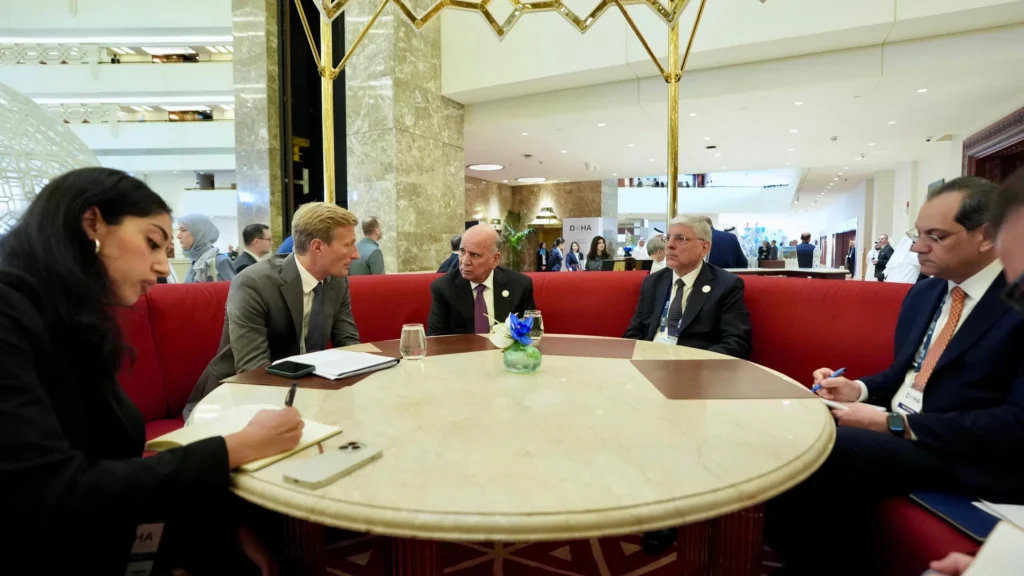 وذكر بيان صادر عن الوزارة تلقته (اليوم الاخبارية) أن “وزير الخارجية التقى نائب المدير التنفيذي لبرنامج الأغذية العالمي، كارل سكاو، على هامش أعمال منتدى الدوحة في نسخته الـ23”.