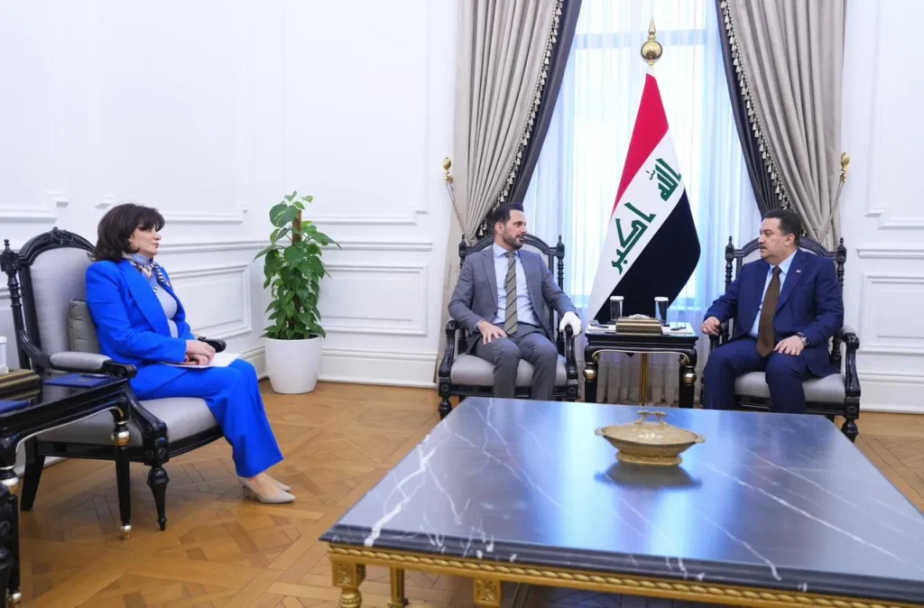 وذكر مكتب رئيس مجلس الوزراء في بيان تلقته(اليوم الاخبارية)، أن”رئيس مجلس الوزراء محمد شياع السوداني استقبل، اليوم الاثنين، رئيس حركة الجيل الجديد شاسوار عبد الواحد، بحضور رئيسة كتلة الحركة النيابية سروة عبد الواحد، وجرى بحث مستجدات الأوضاع في البلاد، الى جانب التأكيد على أهمية توحيد المواقف والرؤى بين جميع القوى الوطنية، للعمل على إدامة منهج إلاصلاح والاستمرار بمشاريع الإعمار والتنمية في عموم البلاد”.