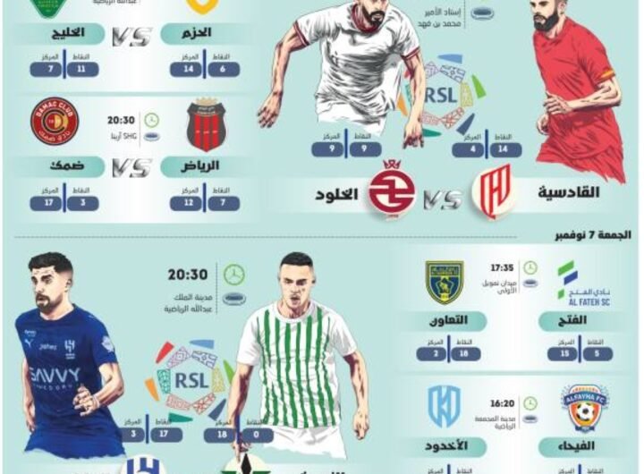 ديربي فاخر وصدارة مهددة – جريدة الوطن السعودية ديربي فاخر وصدارة مهددة – جريدة الوطن السعودية ستكون الجولة الثامنة لدوري روشن السعودي للمحترفين، التي تنطلق اليوم، وتدور رحى منافساتها على مدار 3 أيام...اقراء المزيد