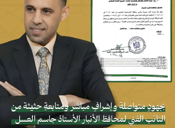 بجهود متواصلة من جاسم العسل إدراج مشروع تجهيز وتنفيذ شبكات مياه الأمطار والصرف الصحي في الفلوجة