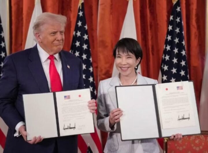 وقع الرئيس الأمريكي دونالد ترمب، الذي يزور طوكيو حاليا، مع ساناي تاكايشي رئيسة الوزراء اليابانية، اليوم (الثلاثاء)،...