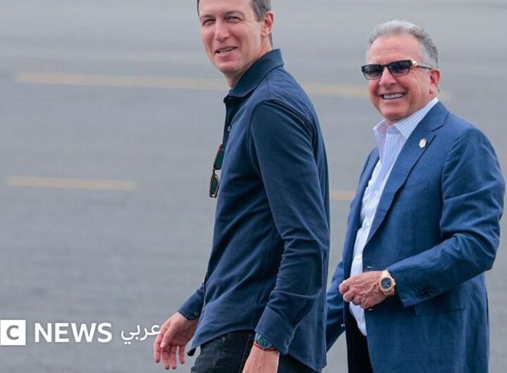 صدر الصورة، Getty Images التعليق على الصورة، وصل ستيف ويتكوف (يمين) وجاريد كوشنر (يسار) إلى شرم الشيخ...