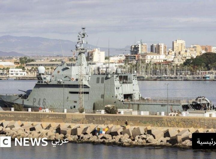 صدر الصورة، EPA التعليق على الصورة، إسبانيا ترسل سفينة حربية لمساعدة أسطول المساعدات إلى غزة قبل 4...