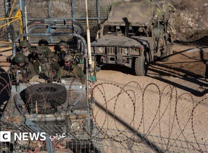 صدر الصورة، Getty Images التعليق على الصورة، آليات ومدرعات إسرائيلية تعبر الحدود من و إلى الداخل السوري...