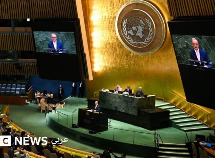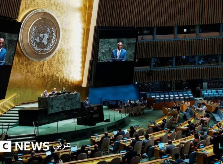 صدر الصورة، EPA قبل دقيقة واحدة انطلقت، مساء أمس الإثنين، أعمال الجمعية العامة للأمم المتحدة، وتصدرت قضية...