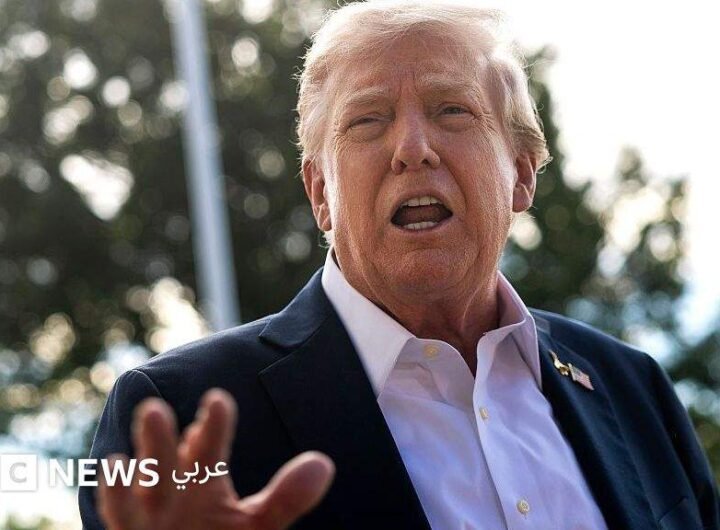 صدر الصورة، Getty Images التعليق على الصورة، الرئيس الأمريكي دونالد ترامب متحدثاً إلى وسائل الإعلام لدى مغادرته...